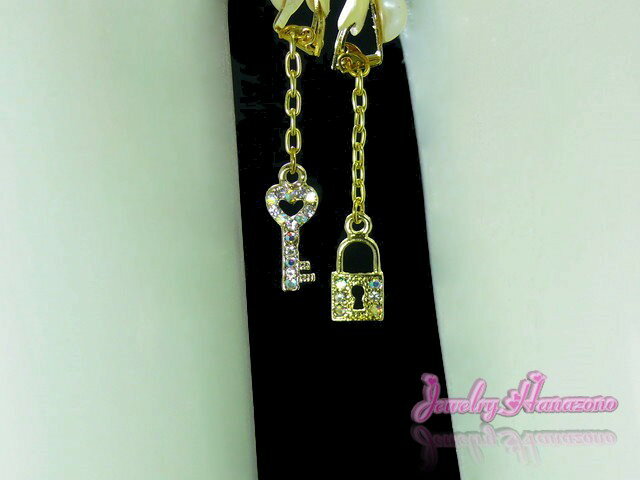 【穴を開ける事なく貴女の身体をより美しく魅せる、繊細で可憐なジュエリー。ラビアにも簡単に付けられる大人の女性のためのノンピアスセクシーボディジュエリー】ラビアクリップ キー&パドロックゴールド